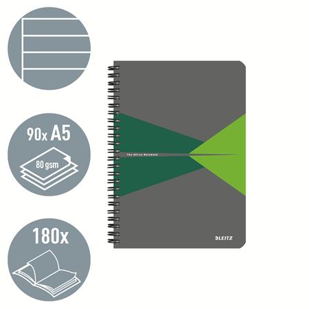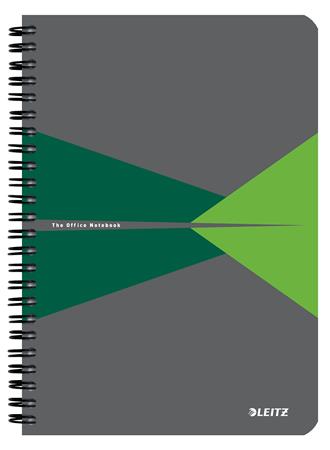 Spirálfüzet, A5, vonalas, 90 lap, laminált karton borító, LEITZ "Office", szürke-zöld